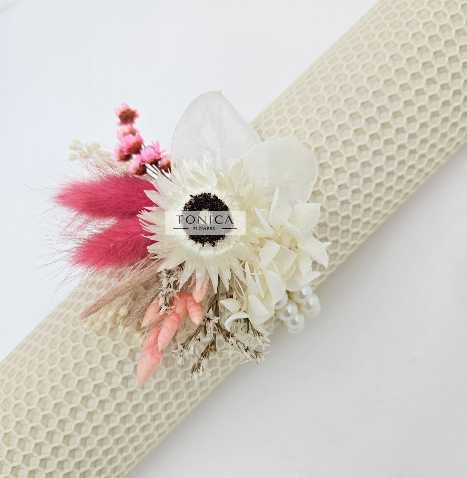 Bratarile sunt lucrate cu flori naturale uscate si stabilizate.