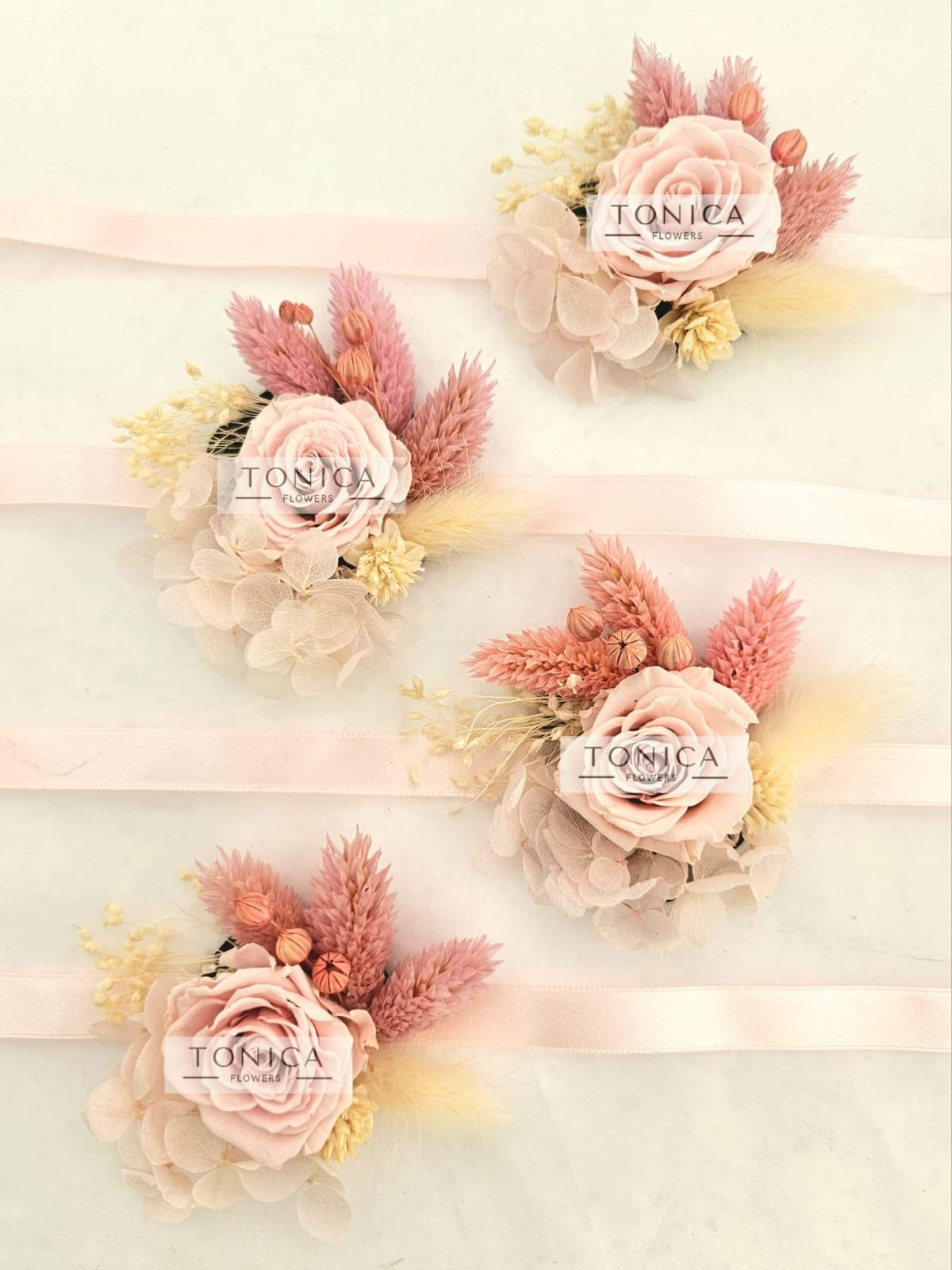Bratarile sunt lucrate cu flori naturale uscate si stabilizate.