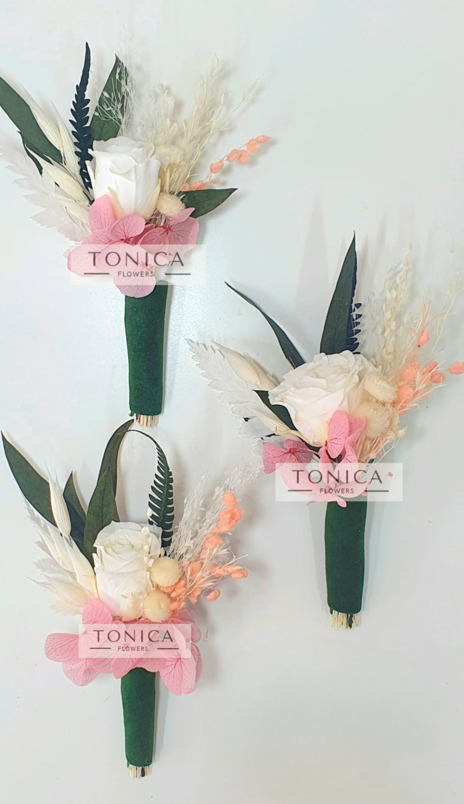 Cocardele sunt lucrate cu flori naturale uscate si stabilizate.