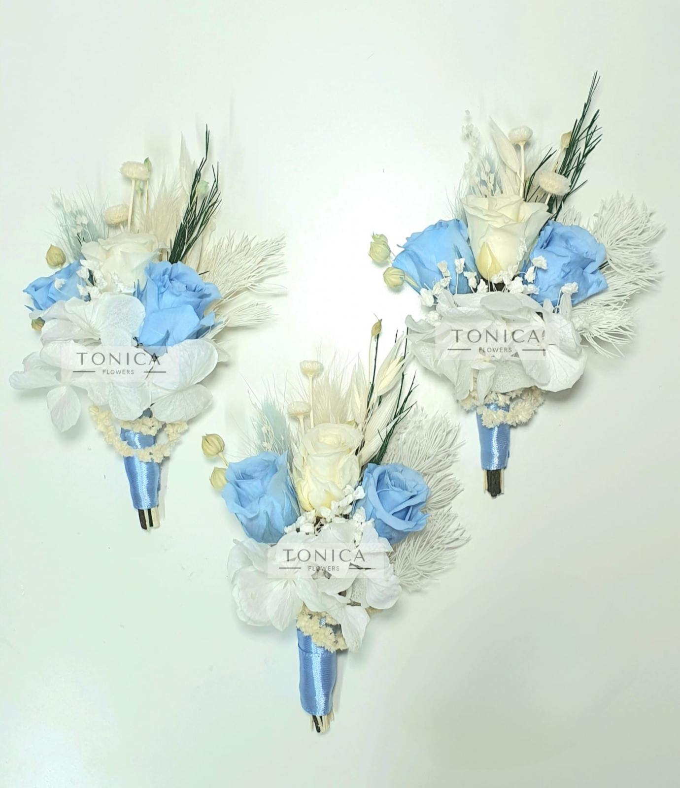 Cocardele sunt lucrate cu flori naturale uscate si stabilizate.