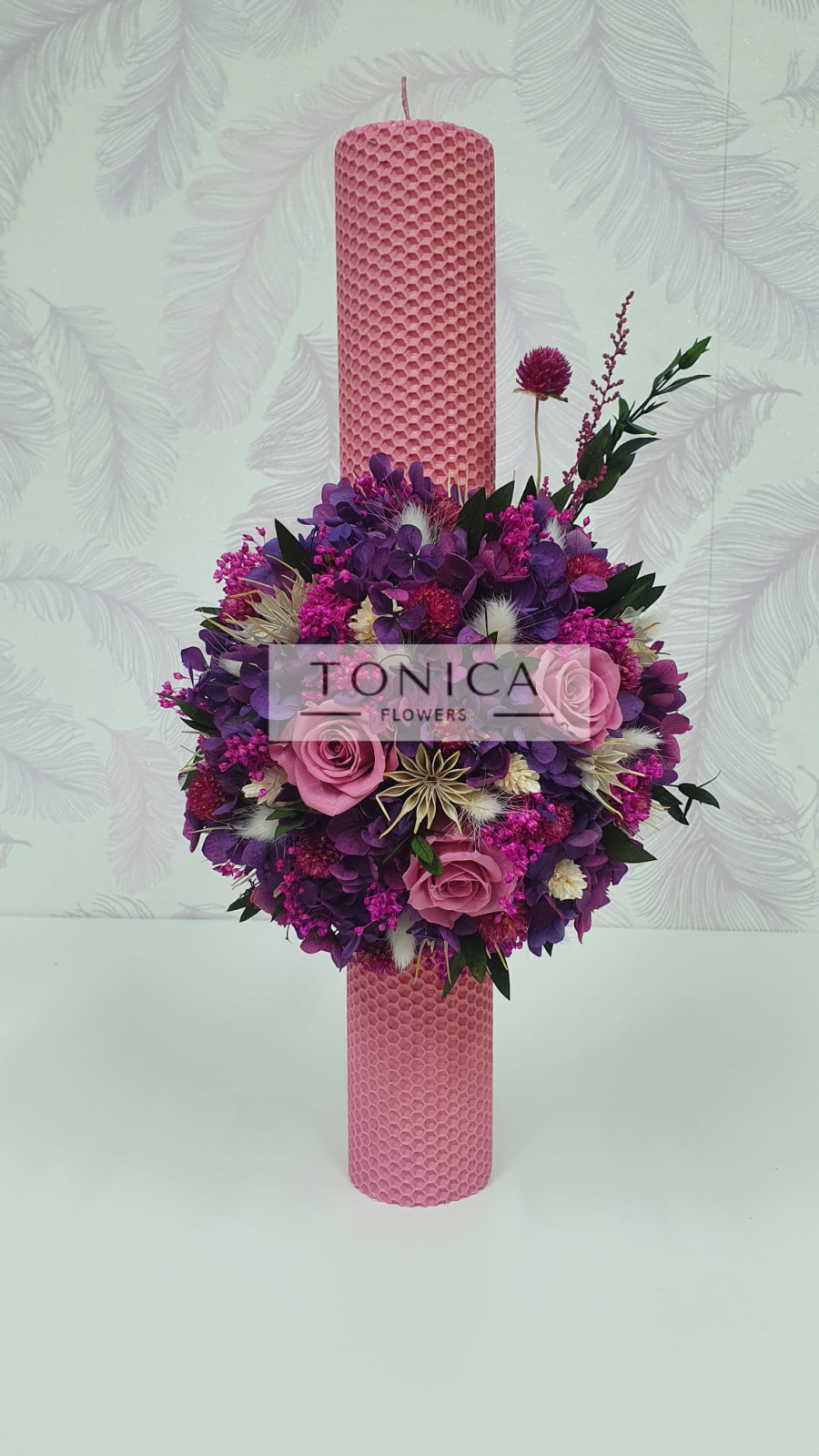 Lumanare tip fagure din ceara naturala, flori naturale criogenate si flori naturale uscate/stabilizate.