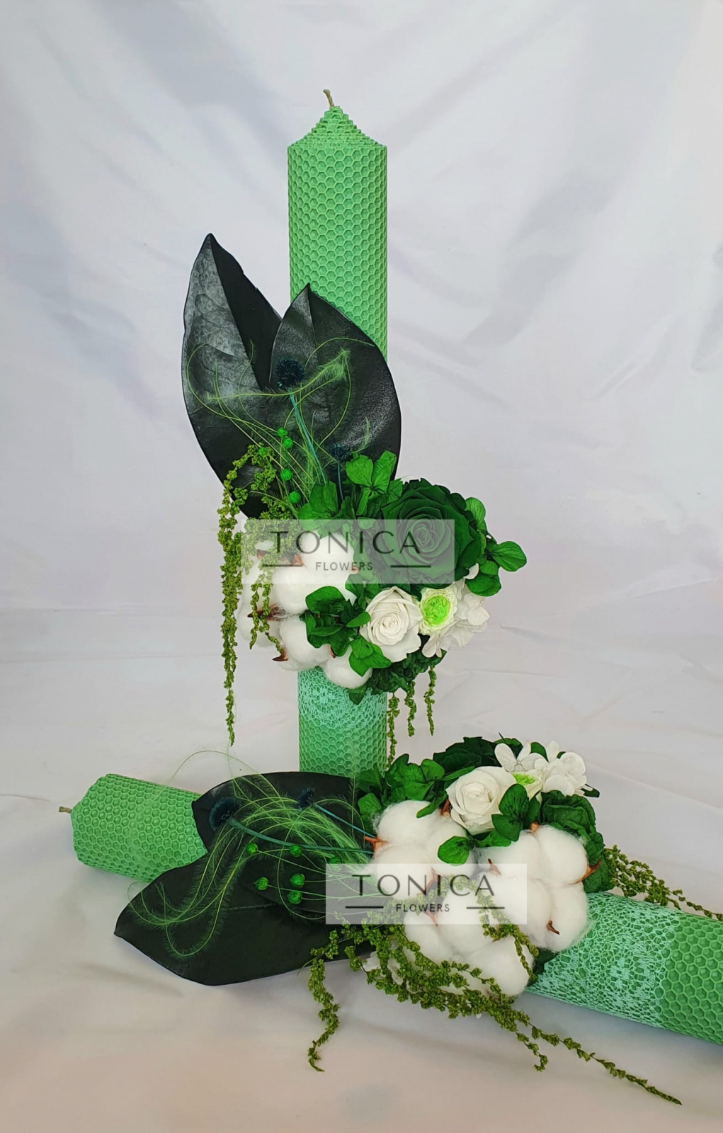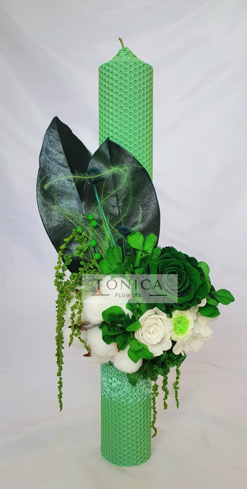 Lumanare tip fagure din ceara naturala, flori naturale criogenate si flori naturale uscate/stabilizate.