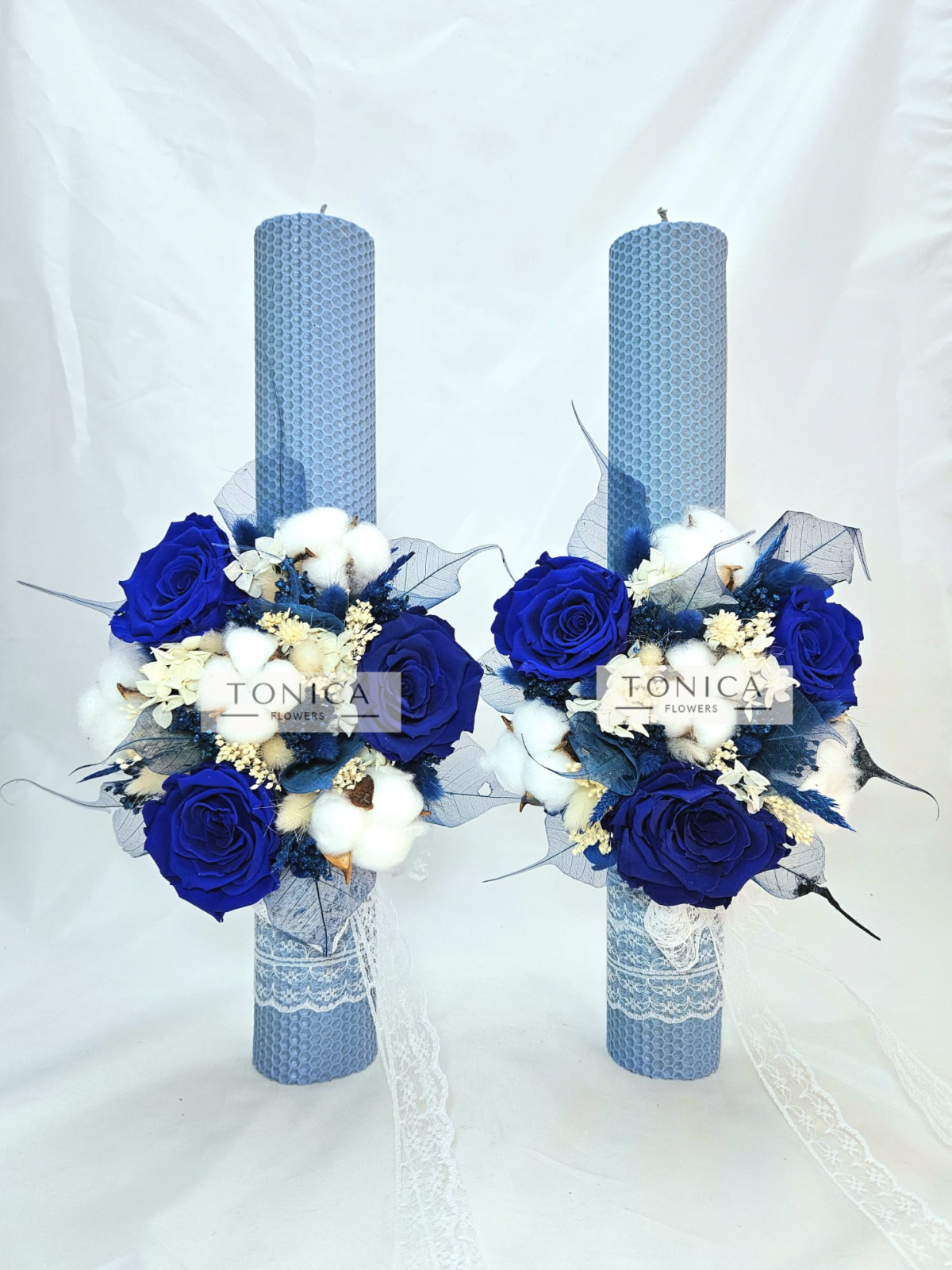 Lumanare tip fagure din ceara naturala, flori naturale criogenate si flori naturale uscate/stabilizate.