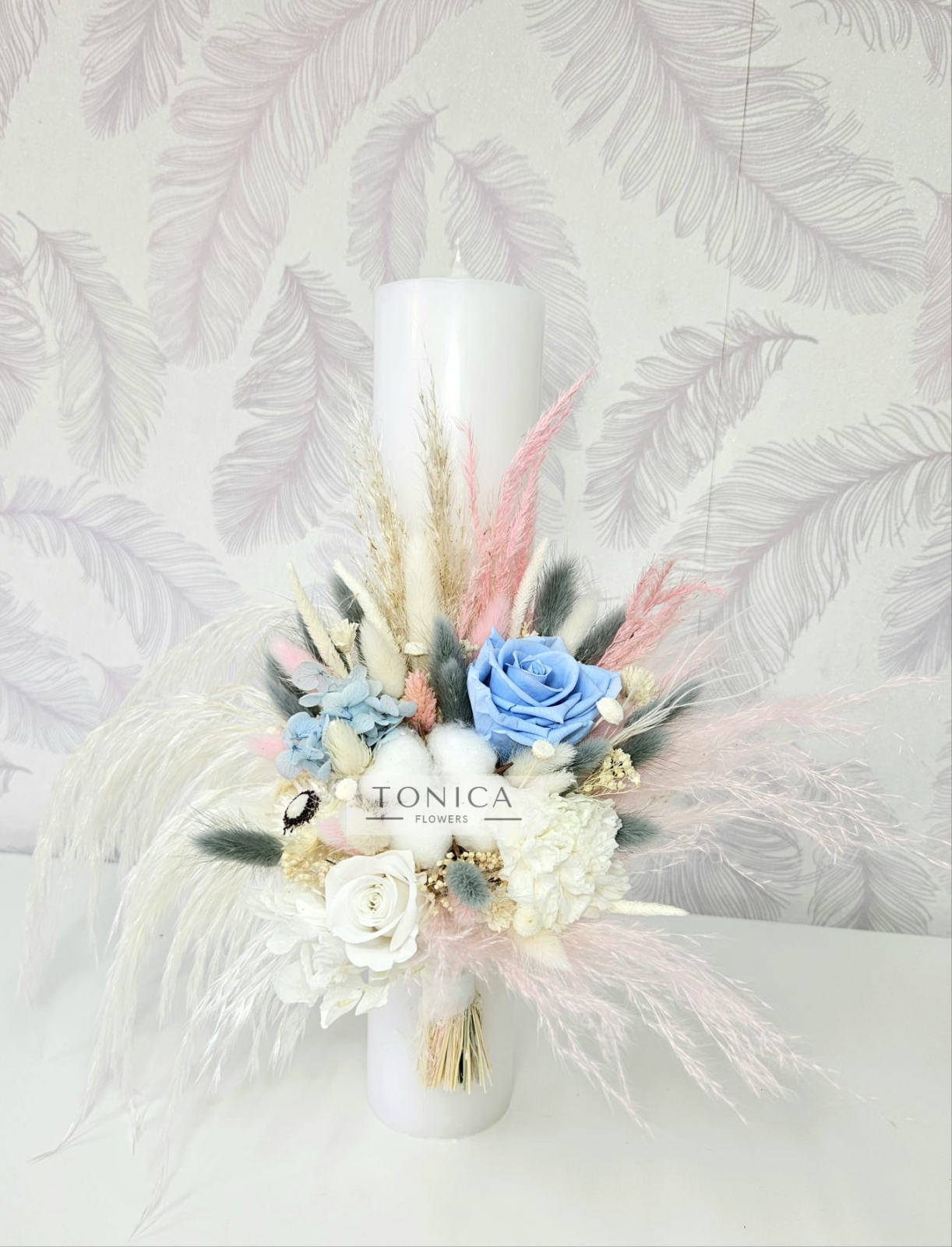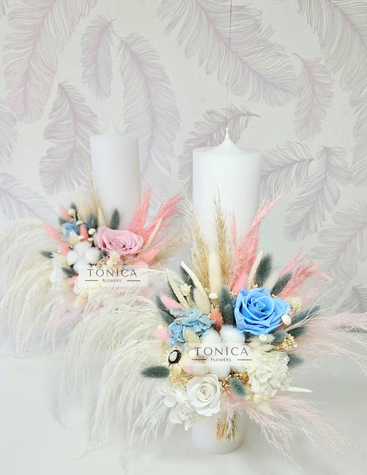Lumanare parafina, flori naturale criogenate si flori naturale uscate/stabilizate.