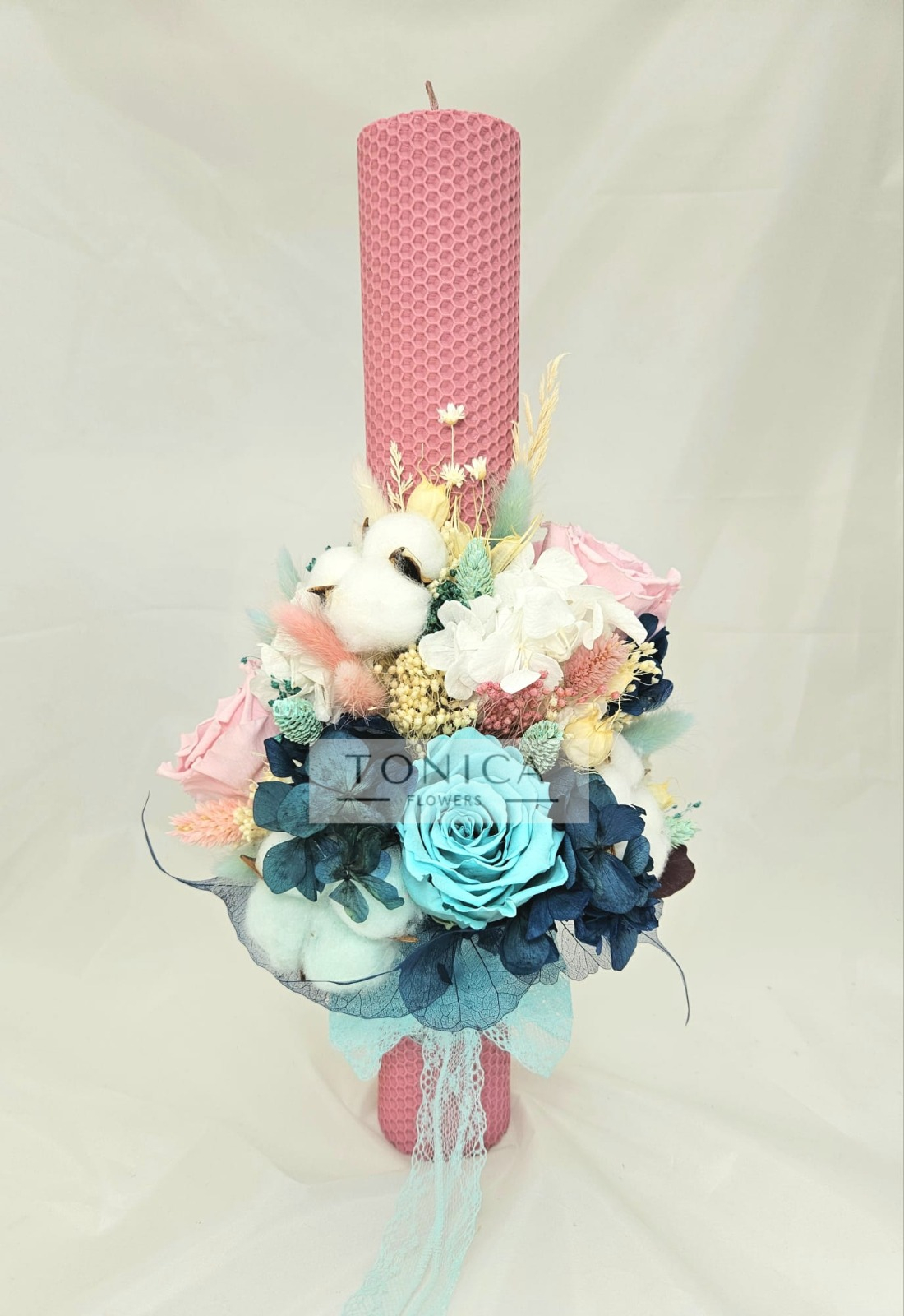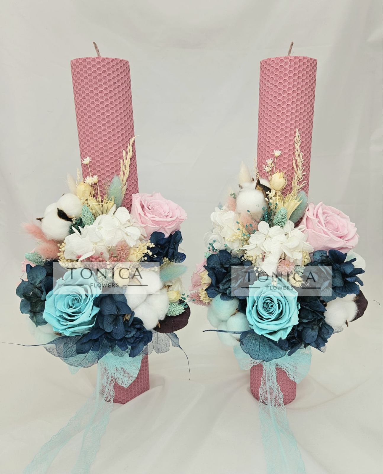 Lumanare parafina, flori naturale criogenate si flori naturale uscate/stabilizate.
